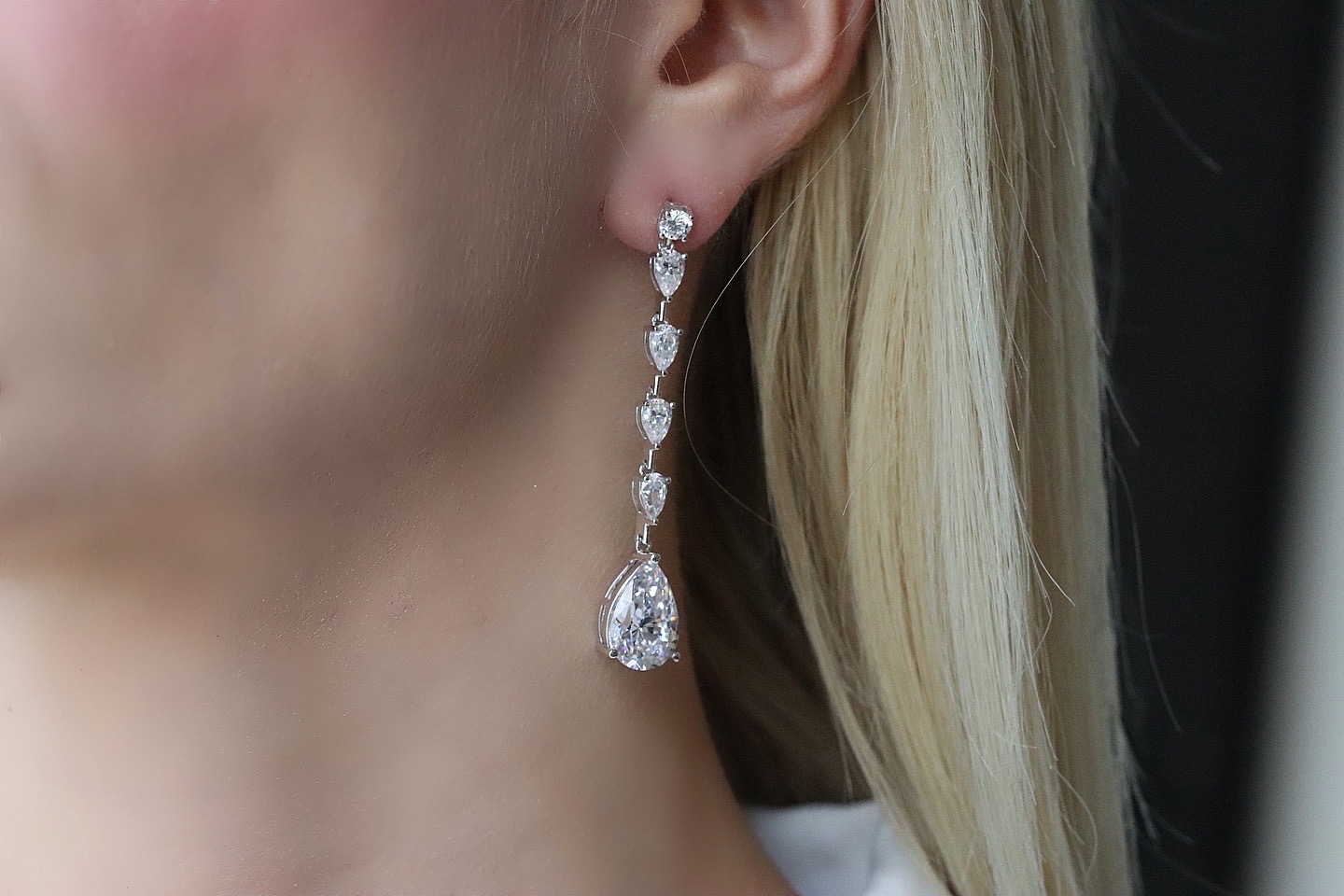 Ασημένια Νυφικά Σκουλαρίκια (925) με Λευκές Πέτρες Ζιργκόν