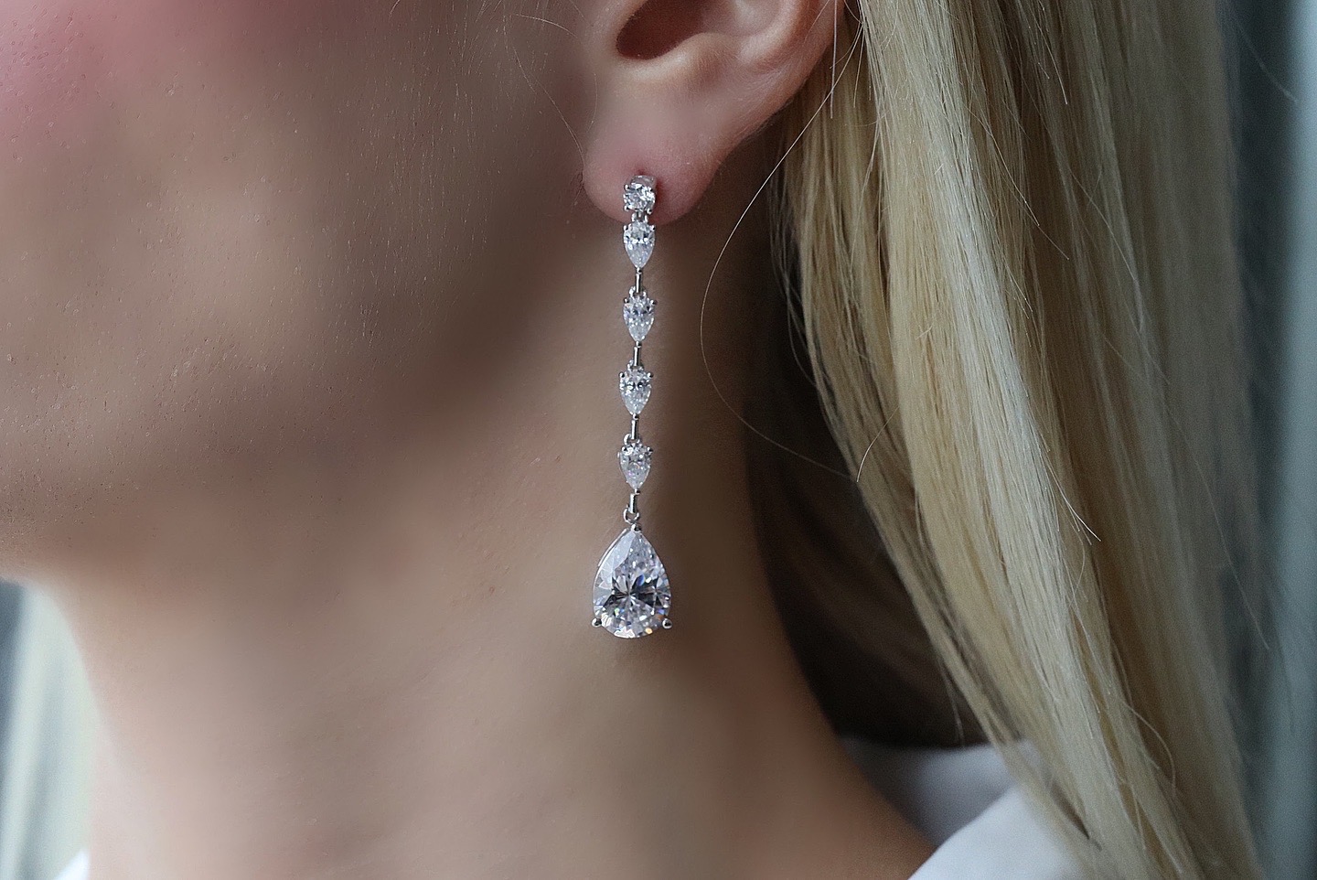 Ασημένια Νυφικά Σκουλαρίκια (925) με Λευκές Πέτρες Ζιργκόν