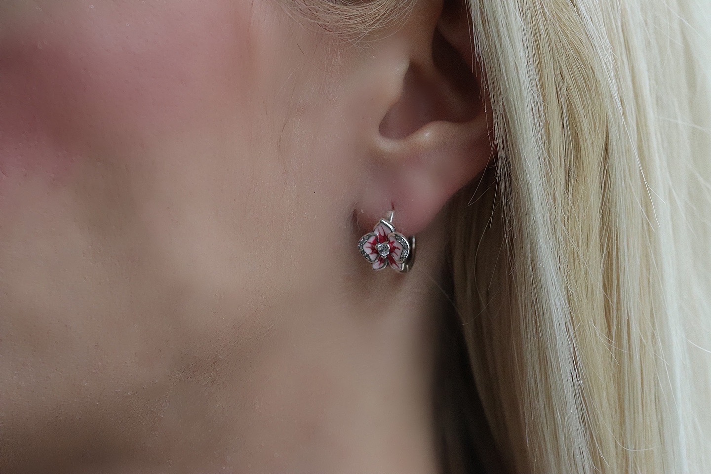 Ασημένια Σκουλαρίκια Λουλούδι με Σμάλτο και Πέτρες Ζιργκόν