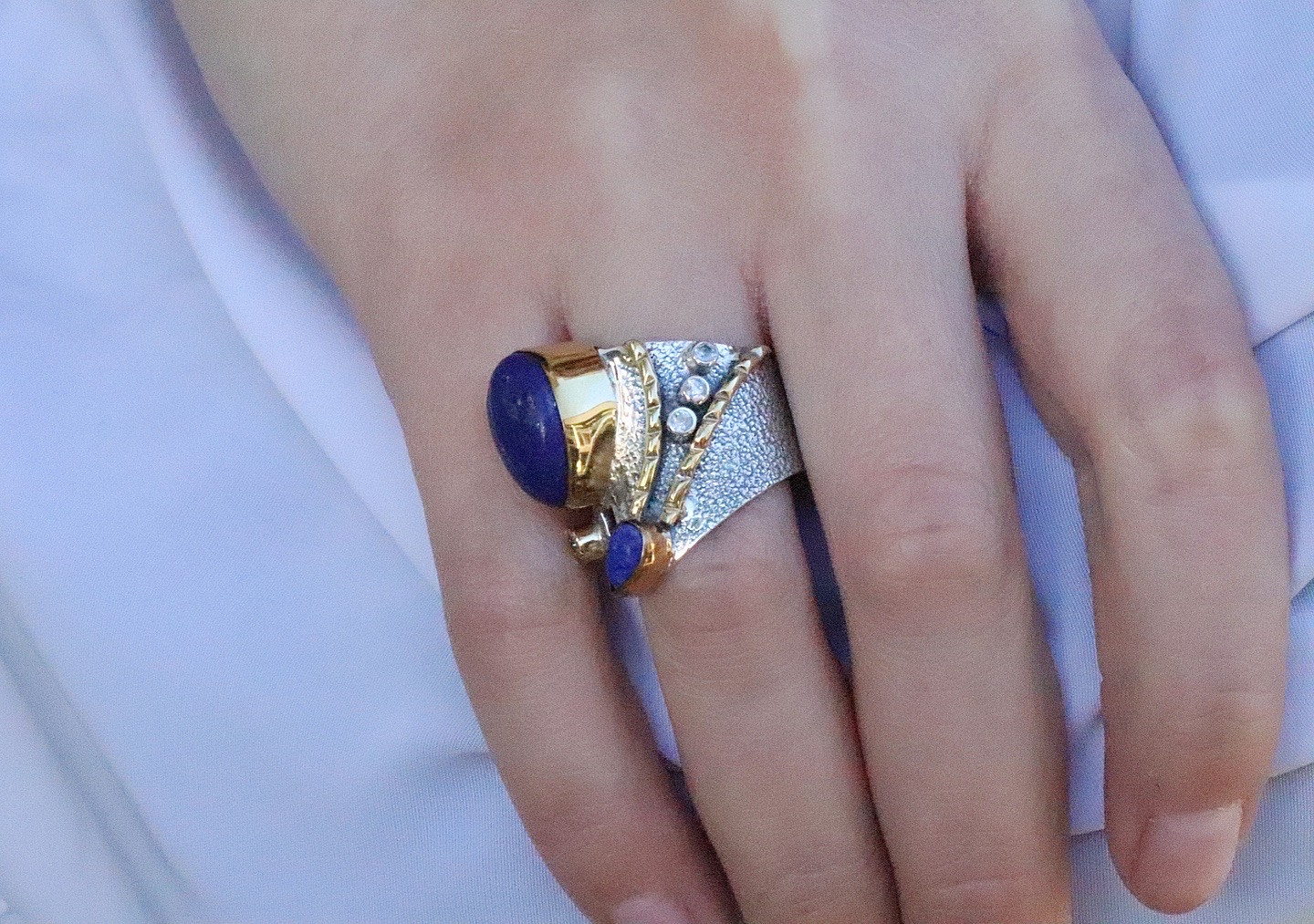 Ασημένιο Δαχτυλίδι (925) με Lapis Lazuli και Πέτρες Ζιργκόν