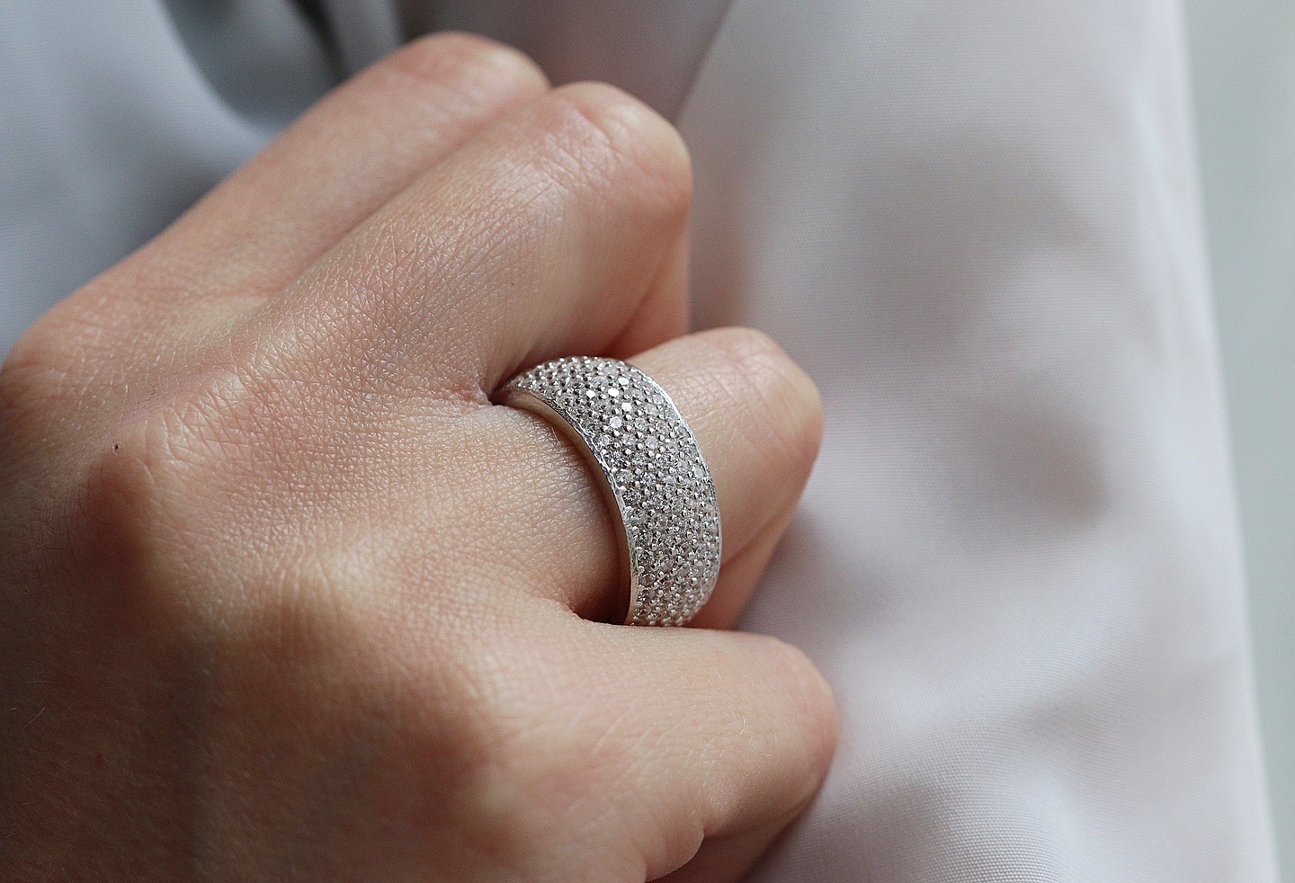Ασημένιο Ολόβερο (925) Φαρδύ με Λευκές Πέτρες Ζιργκόν