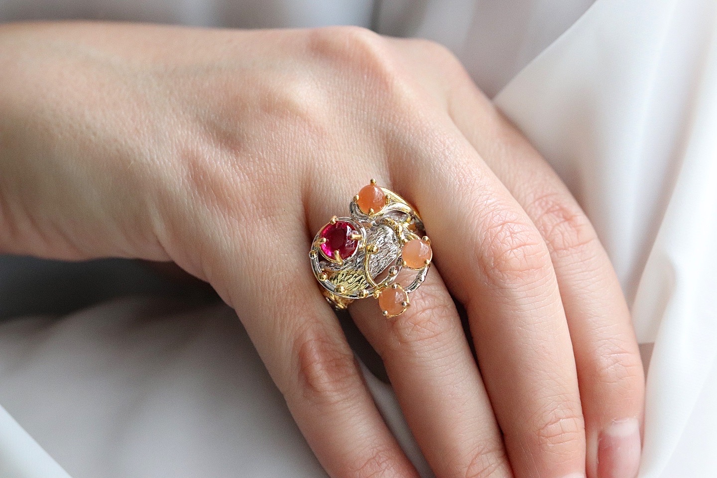 Χειροποίητο Δαχτυλίδι (925) με Ορυκτές Πέτρες Carnelian
