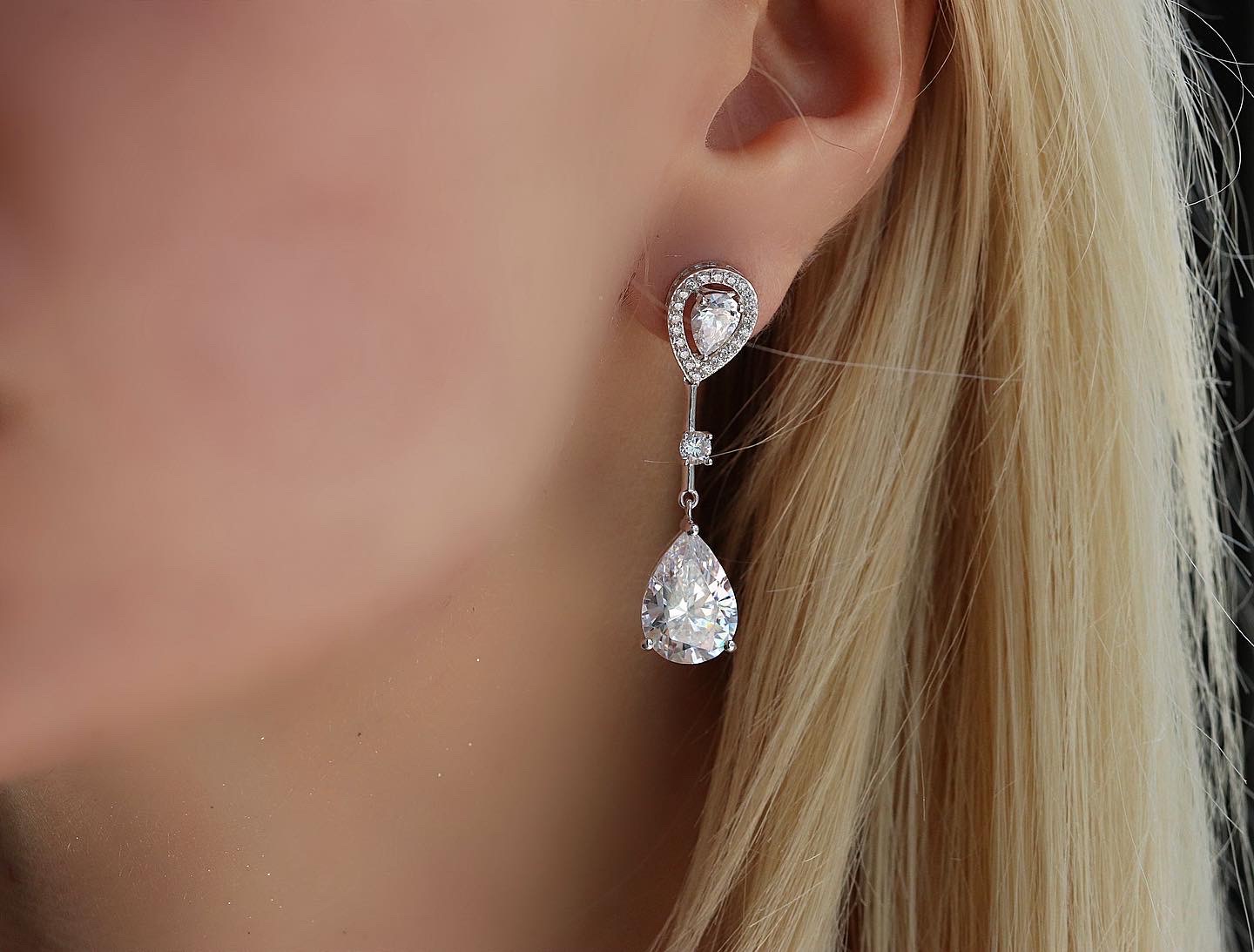 Aσημένια Νυφικά Σκουλαρίκια (925) με Λευκές Πέτρες Ζιργκόν